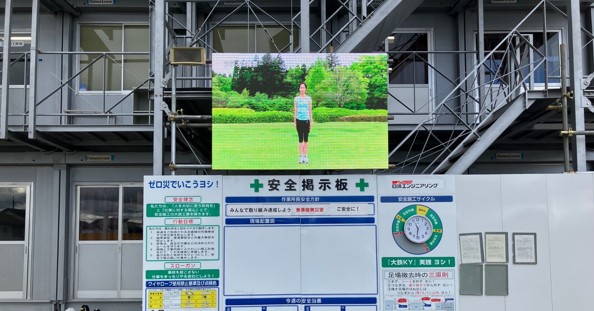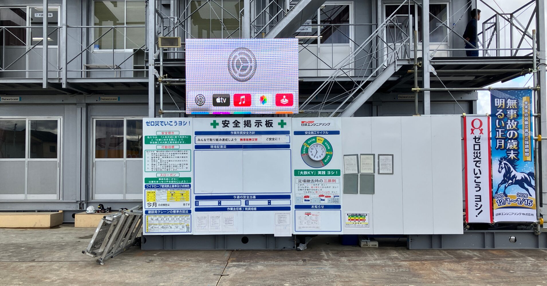 120インチLEDビジョンは、新社屋建設現場における「安全管理・工程共有・情報伝達の効率化」を同時に実現する次世代の現場掲示ソリューションです。