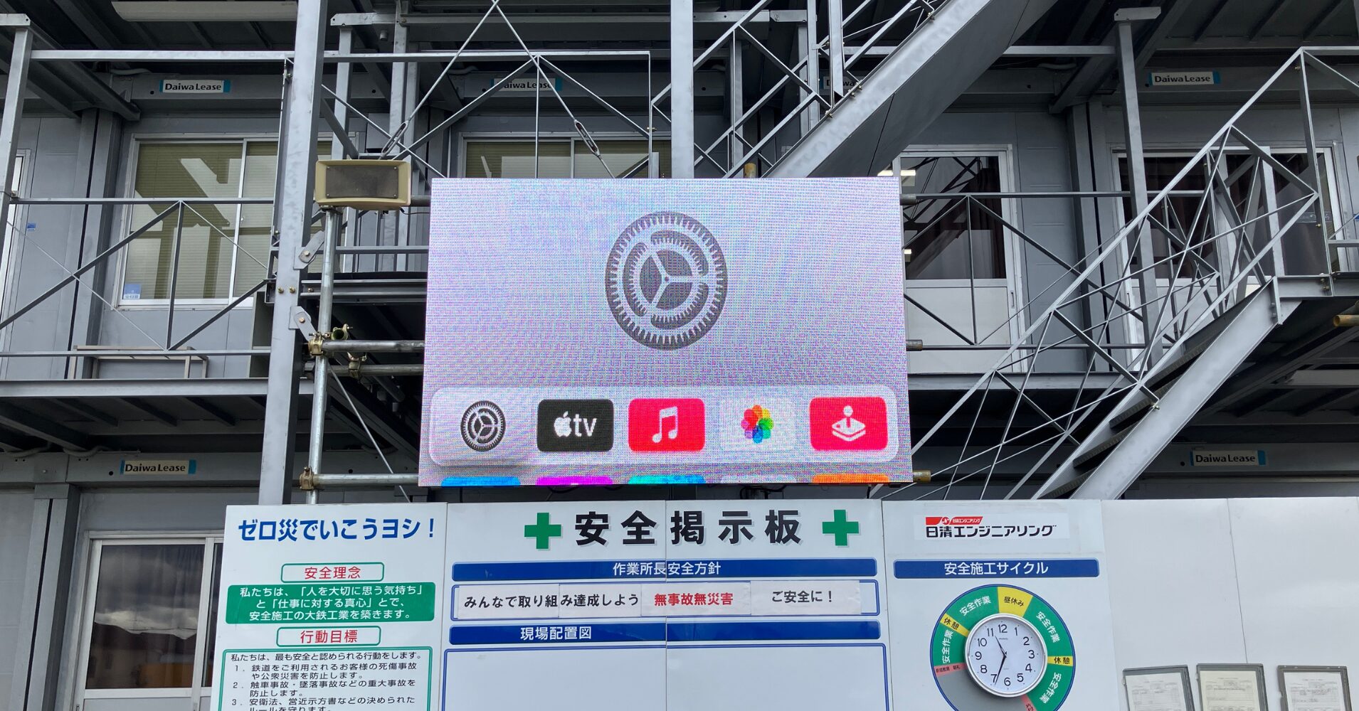 京都府宇治市で進行している「新社屋」関連工事では、企業施設の建設現場として安全管理・工程共有・情報掲示の効率化が求められていました。多くの作業員や協力会社が関わる新築プロジェクトでは、日々変化する工程情報や安全注意事項を確実に共有できる環境づくりが重要になります。そこで導入されたのが、120インチLEDビジョンです。