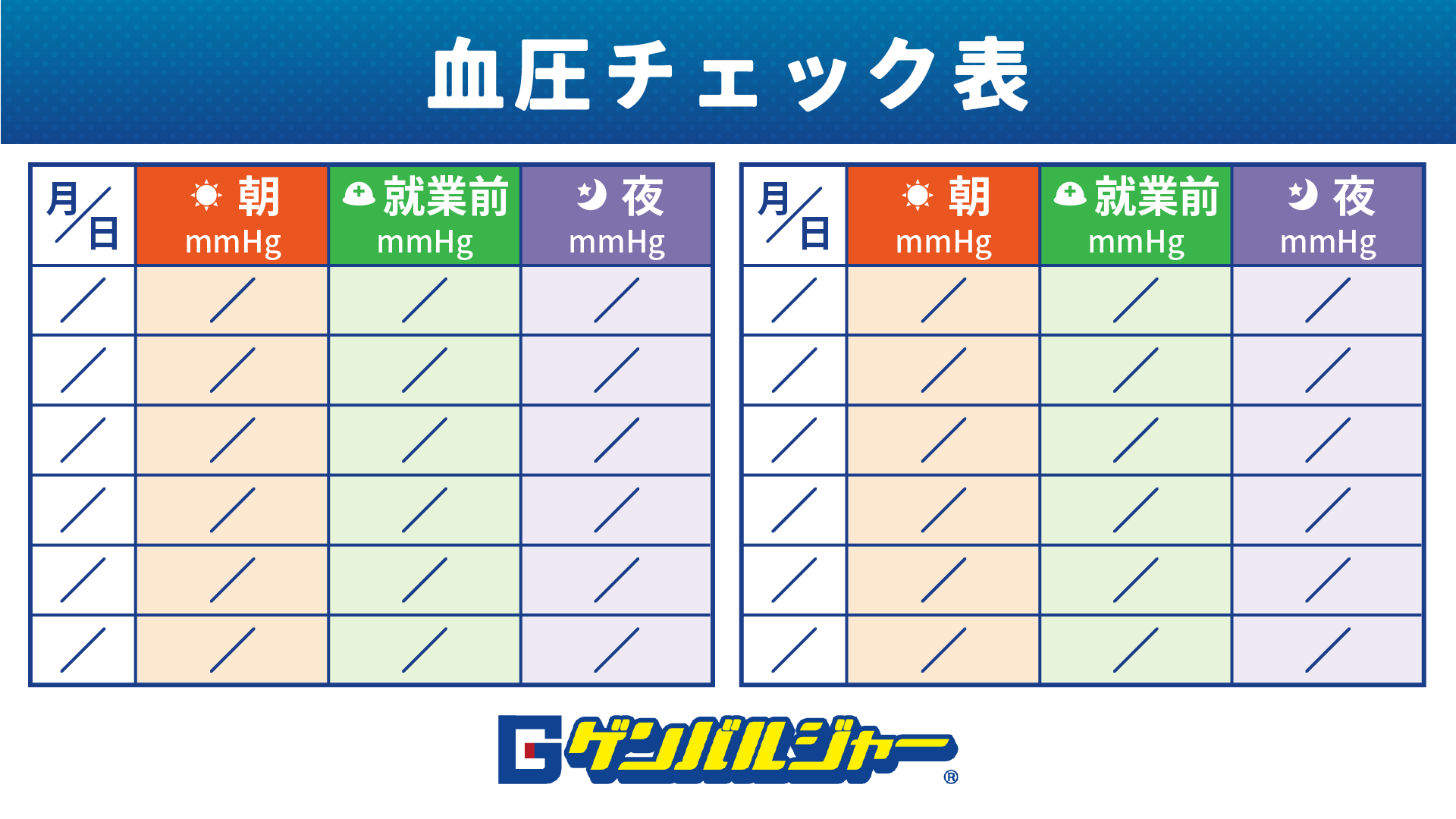 「朝礼看板」向けのデジタルサイネージ用、「血圧測定 実施状況」のテンプレート画像です。