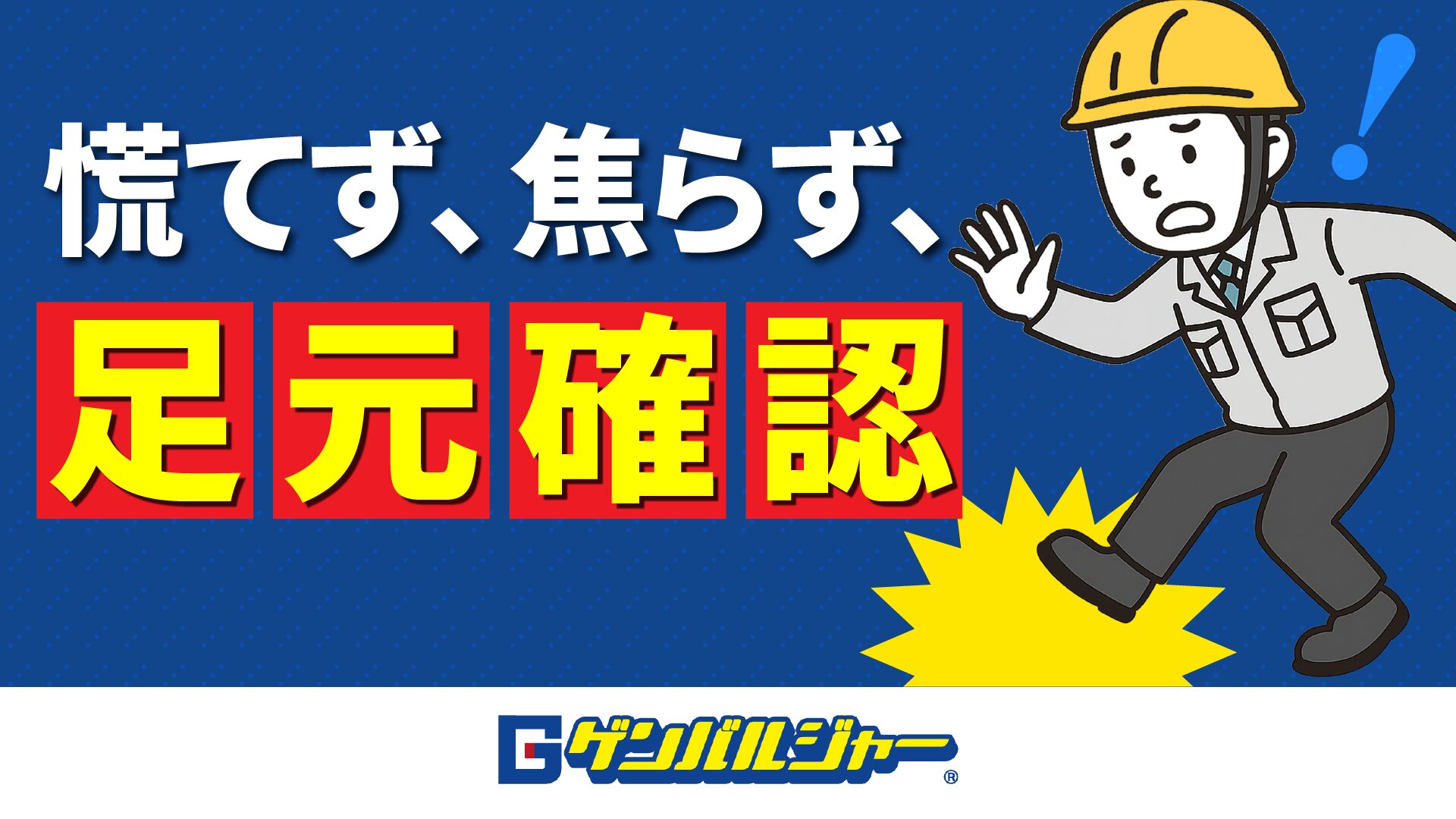 「朝礼看板」向けのデジタルサイネージ用、「足元注意!安全看板」のコンテンツ画像です。