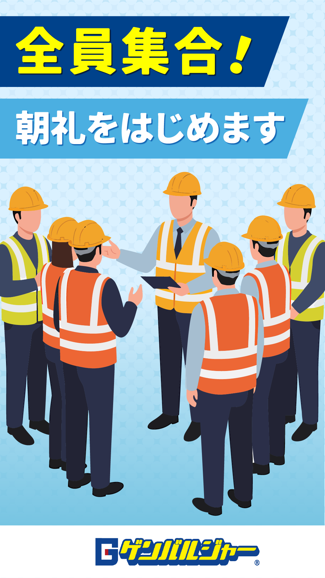 「朝礼看板」向けのデジタルサイネージ用、「朝礼 実施状況」のコンテンツ画像です。